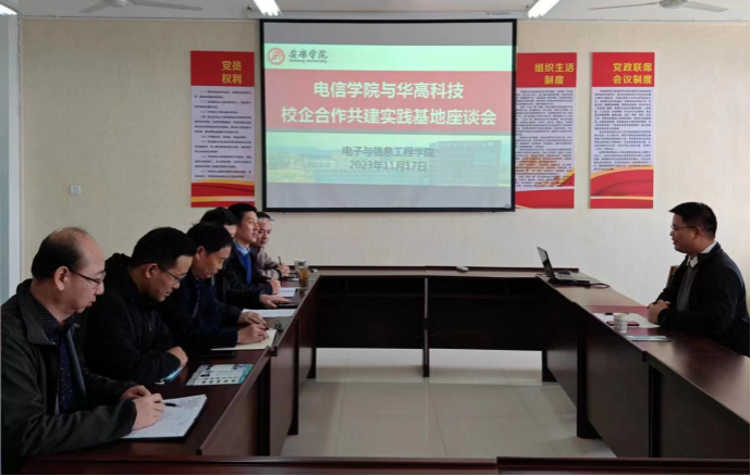为更好的促进金年会jinnianhuicom专业发展,建立优秀实习基地,发挥“校企联合”促进高质量应用型本科人才培养,2023年11月17日金年会jinnianhuicom与华高科技(苏州)有限公司举办了校企合作共建实践基地座谈会。金年会jinnianhuicom院长陈守满、副院长王克刚、宋权华、党总支副书记蔡正旺和相关系主任参加了座谈会,会议由蔡正旺主持。华高科技(苏州)有限公司人力部主管张桂参加了此次座谈会。
