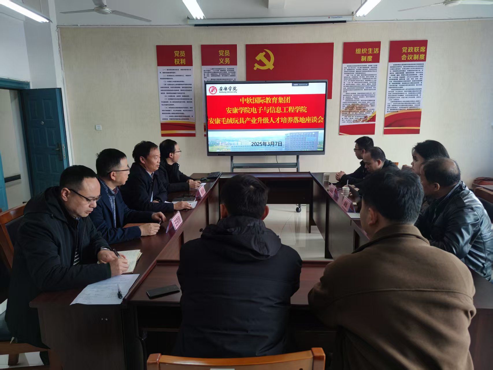 2025年3月7日下午,中软国际教育集团与金年会jinnianhuicom金年会诚信信誉至上在学校逸夫科技楼B702室联合召开“安康毛绒玩具产业升级人才培养落地座谈会”,双方围绕产业智能化转型需求,探索产教融合新机制,为中国毛绒玩具产业新都建设注入数字化人才动能。中软国际教育集团副总经理付永强、中软国际教育集团卓越研究院副院长吴章勇、金年会jinnianhuicom院长陈守满、副院长王克刚等参加了座谈会。