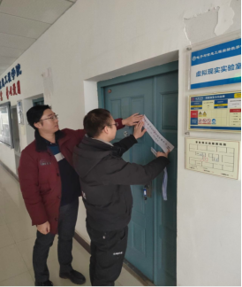 陈守満院长带队对金年会jinnianhuicom各个实验(实训)室进行了全面的安全检查,我院严格对照《高等学校实验室安全检查项目表》检查,包括实验场所、安全设施、基础安全等进行了全面检查,陈院长重点查看实验室的防火防盗情况,包括电子设备仪器和电气开关是否关闭电源,门窗是否关闭,灯具与线路是否存在安全隐患等,多次强调对于安全隐患要及时发现,及时反馈,及时整改以确保假期的实验室安全,为学校教学科研工作做好安全保障。检查完毕后,实验室管理教师对各实验室大门加贴了学院封条。