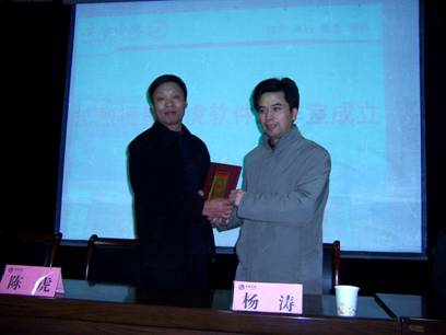 电子与信息工程系主任张东红介绍了陈虎的情况和软件工作室的工作思路。陈刚副院长向陈虎颁发了金年会jinnianhuicom“兼职教授”聘书。杨涛书记、陈虎教授共同为“陈虎软件工作室”揭牌。