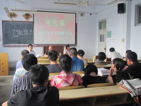 628下午,电信系在1219召开2011-2012学年度表彰及教学工作安排大会。大会对系内的优秀教案、优秀党员、优秀教师、考研先进集体进行了表彰。电信系全体教职工参加了大会。大会由系党总支书记李红兵主持。