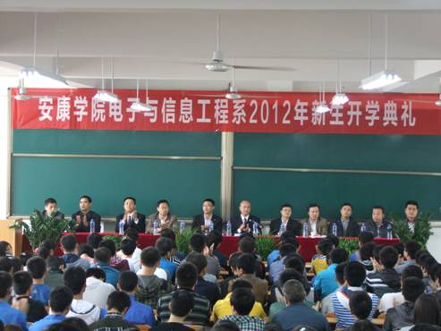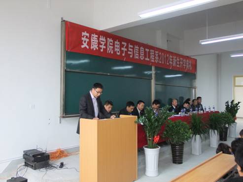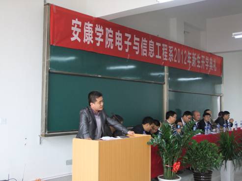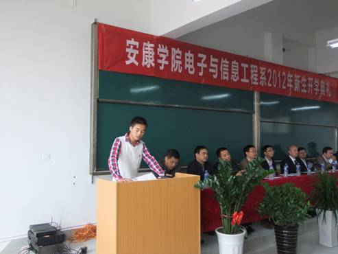 1011,电信系2012级新生开学典礼在江北校区1303教室隆重举行,2012453名新生,系主任张东红、系总支书记李红兵、教学副主任陈守满、科研副主任王庆春、系办学办主任、教研室主任、教师代表出席了典礼。大会由系总支书记李红兵主持。