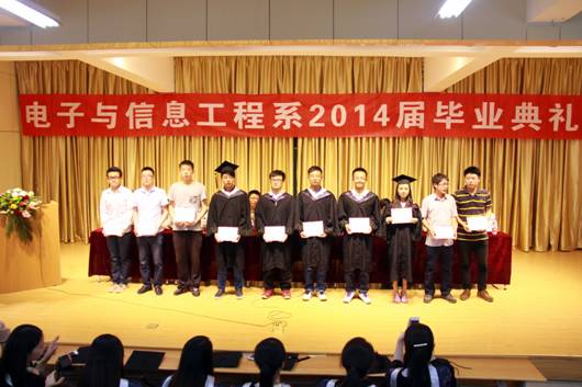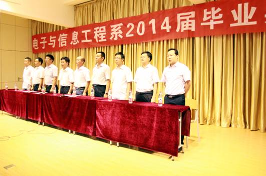 电子与信息工程系2014届毕业生毕业典礼于6月25日下午在1401室隆重举行。金年会jinnianhuicom副校长陈刚、系主任张东红、系党总支书记李红兵、系副主任陈守满、系副主任王庆春、系办公室主任刘宏、系学工办副主任石纭昊、各教研室主任以及197名毕业生参加了此次典礼。此次典礼由党总支书记李红兵主持。