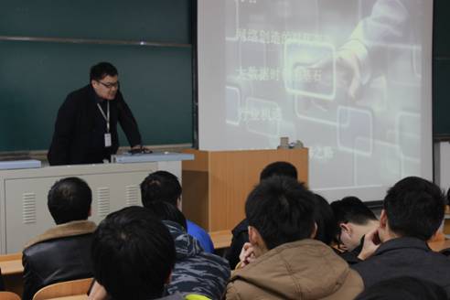 苏广建工程师从网络创造的时代变革、大数据时代的基石、ICT行业的机遇和成就ICT“攻城狮” 四个方面作了精彩的报告。报告会介绍了当代互联网社会、现代网络的应用和发展,讲解了企业的用人原则、计算机专业的社会需求和就业趋势。