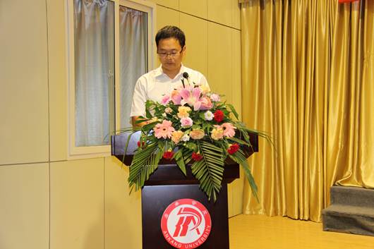 青年教师陈颖博作为教师代表发言,四年美好时光,我们共同度过,使我们的生活永远有青春相伴,希望同学们做人要实,做事要实,求知要实,敢于拼搏,以平和的心态迎接未来挑战。无论天涯海角,请记住,母校永远是你们前进的坚强后盾,记得常回家看看。祝福同学们能够飞的更高、更远。