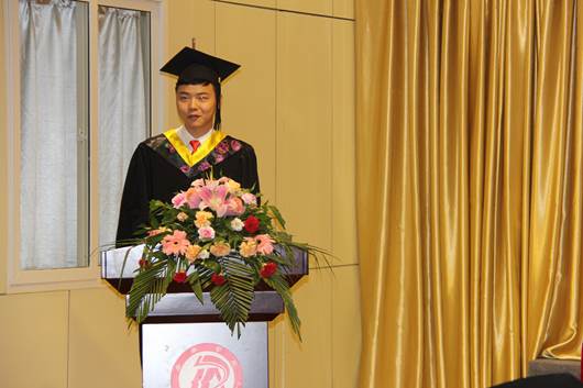 毕业生代表牛牧迪同学发言。追忆生活的点滴,惜别的泪水总是情不自禁。感谢母校对我们的辛勤培育,表示要牢记老师的谆谆教诲,不忘师生情,同学情。在工作中不断进取,为实现自己的梦想而奋斗。