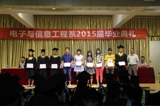 副主任陈守满教授宣读了金年会jinnianhuicom关于2015届优秀毕业生的表彰决定,电信系牛牧迪等8名学生获得“优秀毕业生”荣誉称号。