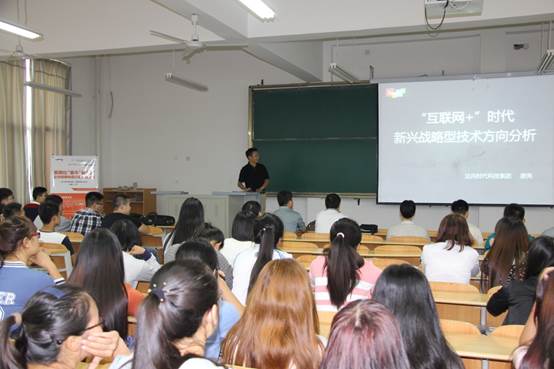 唐亮先生向师生讲解了互联网+的内涵、特点、应用领域和发展方向,重点介绍移互联网技术对生产、生活、消费、服务等方面产生的重要影响,并就大数据、云计算、物联网技术进行简要说明。