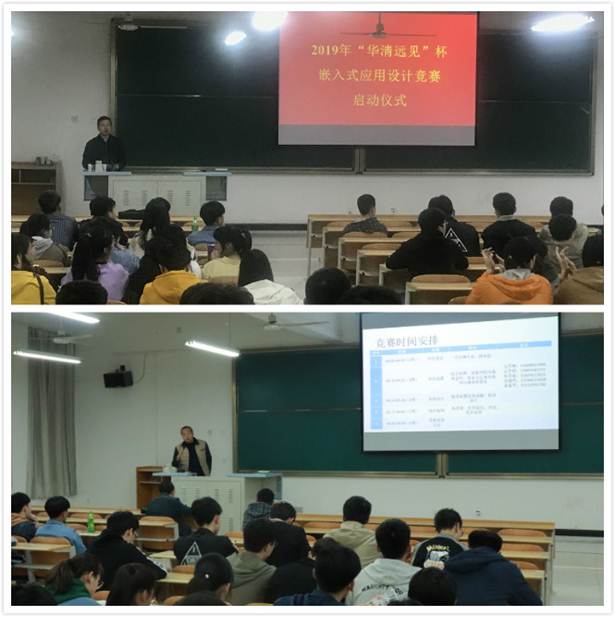4月2日,金年会jinnianhuicom在一号教学楼1305教室举行第1届 “华清远见”杯嵌入式应用竞赛启动仪式,出席启动仪式有金年会jinnianhuicom副院长王克刚教授、崔智军老师、邹超然老师、华清远见企业负责人龚兵老师,以及所有报名参赛的学生。