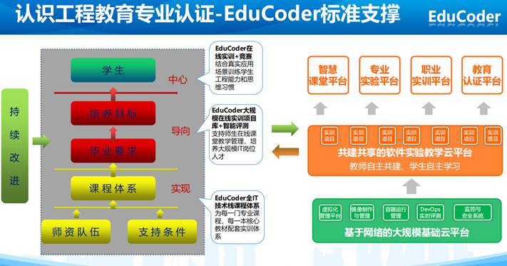 培训从“信息技术工程教育服务平台大规模创新与应用”和“基于EduCoder的IT工程教学模式&工程教育专业认证交流”两个主题展开。从工程教育认证的“需求与挑战”“思路与方案”“案例和实践”等多方面介绍了信息技术工程教育认证的成功经验。同时介绍了“工程教育认证的标准”和“EduCoder在线大学工程认证的操作和流程”。培训最后还通过视频会议的方式和国防科技大学王涛教授进行了“面对面”的讨论、交流。