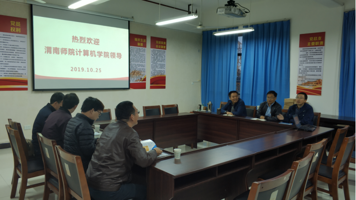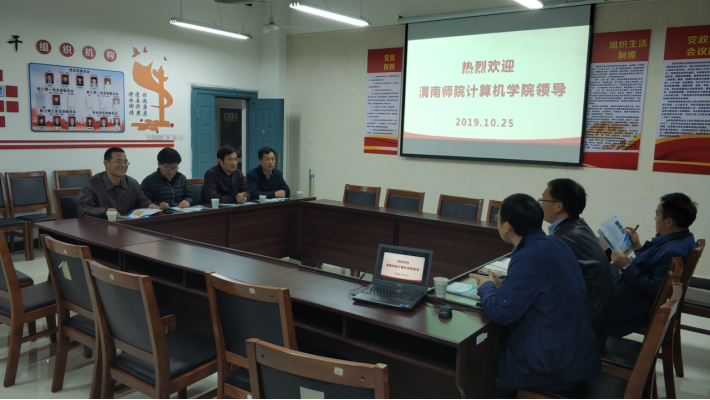 10月25日下午,渭南师范学院计算机学院院长刘军,书记杨洁,副院长何小虎,信息技术素养课程群负责人奚建荣一行到我院开展工作交流。金年会jinnianhuicom院长陈守满,副院长王庆春、王克刚,信息技术教研室主任宋权华热情接待了刘军一行,并在逸夫科技楼会议室召开了座谈会。座谈会由院长陈守满主持。