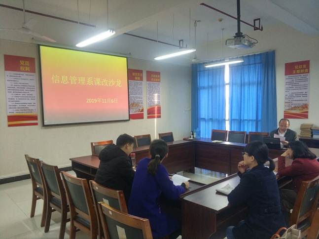 11月6日下午,金年会jinnianhuicom院信息管理系全体教师在江北校区逸夫科技楼B702会议室围绕“线上线下一体化教学”开展课改沙龙活动。