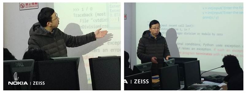 接下来王克刚教授进行了Python程序设计编程思想、程序设计示例讲授。在教学过程中,通过讲练结合,让每个学生都充分参与课程,在轻松、愉悦、高效的氛围下掌握教学内容。整个教学观摩活动在紧张、融洽的教学气氛中结束。