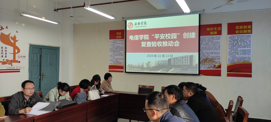 为贯彻落实《金年会jinnianhuicom省级“平安校园”创建复查验收工作方案》的通知,11月13日下午金年会jinnianhuicom在逸夫科技楼B702召开金年会jinnianhuicom“平安校园”创建复查验收工作推动会,安排部署“平安校园”复查验收相关工作。院长陈守满,副院长王克刚,两办主任,系(教研室、中心)主任、辅导员老师、实验室管理老师参加了会议。