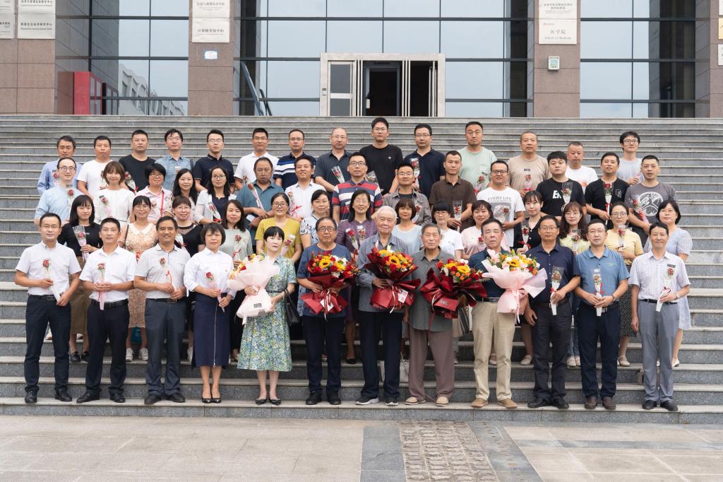 会后,所有金年会jinnianhuicom全体教师和退休教师在逸夫科技楼前合影留念。
