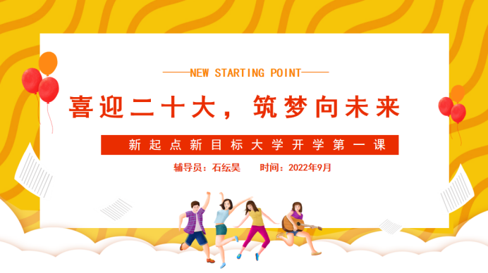 为加强学生思想政治教育工作,以及做好疫情防控下的线上教学工作,9月9日金年会jinnianhuicom辅导员石纭昊组织所带学生召开以“喜迎二十大 筑梦向未来”为主题的新学期班会。