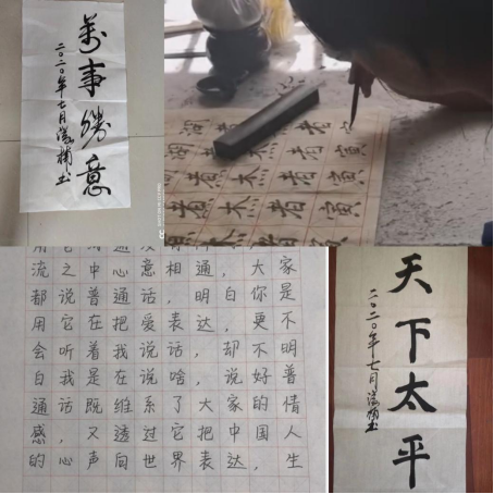 活动中,金年会jinnianhuicom将推普周宣传工作与语言文字日常工作有机结合,积极组织在校学生参加中华经典诵写讲大赛,通过诵读、讲解、书写、篆刻等语言文字表现形式,弘扬中华优秀语言文化,提升广大学生的语言文字应用能力和语言文化素养,营造亲近中华经典、热爱中华经典的社会氛围。以推普周为契机,开展经典诵读活动展示,全院学子积极响应,通过录音、录像等方式,完成语言文字答题挑战、成语接龙、中外名著的片段朗诵等多种线上活动。鼓励学生通过微信、微博、抖音等新媒体平台发布推广本次普通话活动的相关视频及推文。同时,号召爱好书法的同学通过作品撰写来吸引更多同学感受到中国文字的独特魅力,提升宣传集聚效应,体现推普精准度与实效性,促进推普活动融入学生的日常生活之中。