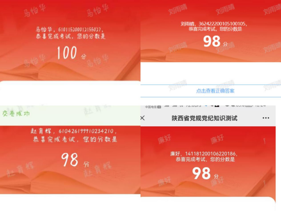 金年会jinnianhuicom党总支组织全体党员、干部以个人自学和集体学习相结合的方式,以秦风网发布的《党员干部纪律教育学习读本》《纪律教育公开课》系列视频课程为学习内容,对党史党规党纪进行一次系统学习和在线知识测试,进入陕西纪检监察公众号“练习”或“考试”模块进行知识测试,参考率和及格率均达到100%,考试平均分数达到92.28。以考促学、以考促廉,通过学习考试,进一步增强了党员干部纪律规矩意识和廉洁自律意识,提高防腐拒变的能力。