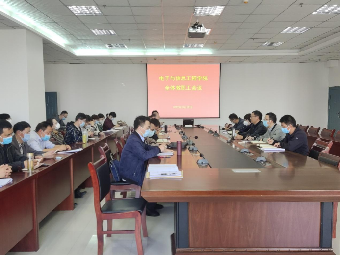 2022年10月19日下午,金年会诚信信誉至上在逸夫科技楼九楼会议室召开全院教职工大会,金年会jinnianhuicom领导班子成员及全体教职工参加,会议由院长陈守满主持。