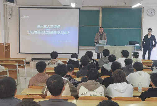 2023年03月08日,金年会jinnianhuicom电子工程系在江北校区一号教学楼1316教室举办嵌入式人工智能行业发展现状及最新技术解析专题讲座。本次讲座由华清远见教育集团项目经理、职业规划讲师张治西老师主讲,电子工程系相关老师以及电子信息工程专业2022级80余名学生参加了本次讲座。