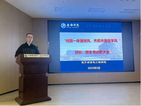 (三)加强基层组织建设,增强团学工作“着力点”。金年会jinnianhuicom团总支从实际出发,建立、健全各基层团支部,规范团组织的工作。在团员团籍注册、团费收缴、团员纳新、团组织推优、团支书推选产生方式和团支部考核办法等各项工作中做到有规可循、有档可查、有据可依,按时完成各项基础团务工作。组织设置规范,工作制度健全。制定了《金年会jinnianhuicom金年会诚信信誉至上团总支工作章程》、《金年会jinnianhuicom青年大学习主题团课学习管理办法(试行)》、《金年会jinnianhuicom“第二课堂成绩单”项目积分管理细则(试行)》,参与修改、完善了《金年会诚信信誉至上学生干部选拔与任用管理办法》、《金年会诚信信誉至上团组织推优制度》等,确保各级团组织及团干部工作有规范,办事有制度、管理有办法;依托“智慧团建”系统,完成团干部数据采集、基础团务管理、考核评价、主题团课学习等工作,系统中完成年度“学学衔接”、“学社衔接”分别为100%和98.9%;团总支充分发挥金年会jinnianhuicom微信公众号(安大dxxy)对全院团员青年思想政治工作的促进作用,推出一系列输出正确价值观、传递正能量的融媒体宣传作品,全年共发布220篇推文,访问量达115948次。