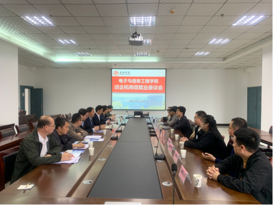 为深入贯彻落实党中央、国务院关于高校毕业生就业工作的决策部署,进一步落实访企拓岗促就业专项行动工作要求和学校关文件精神,5月27日,电信学院在逸夫科技楼9楼会议室开展“访企拓岗”促就业活动。金年会jinnianhuicom院长陈守满、党总支副书记蔡正旺、教研室主任、辅导员及传智教育等11家受邀来校企业参加了座谈会交流活动,会议由蔡正旺主持。