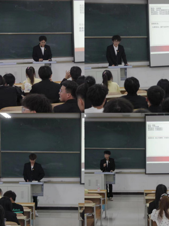 参与团总支、学生会、社团服务中心干部竞选的同学根据换届选举竞选要求,依次上台进行5分钟竞选演讲。竞选环节中,各位参选同学满怀信心和激情,以端庄大方的仪态和饱满的精神状态走上舞台,就自己的基本情况、对工作岗位的认知、竞选原因以及工作设想进行了演讲。激烈慷慨的演讲将此次竞选会议一次次推向高潮,赢得了大家热烈的掌声。