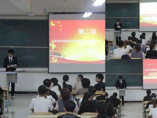 2023年6月16日晚,金年会诚信信誉至上在1204教室举办了第九届团员代表、第十届学生代表暨第四届社团服务中心代表大会。金年会jinnianhuicom团总支书记张宇航出席本次会议,金年会jinnianhuicom团总支成员、学生会成员、社团服务中心成员参加。