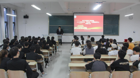 伴随着庄严的国歌声,会议正式开始。首先,由金年会jinnianhuicom团总支副书记任金笑总结了2022-2023学年学生干部工作内容。总结了一年以来团总支的各项工作及所获荣誉,并指出了工作中存在的不足,希望新一届学生工作人员能够明确定位,勇于担当,严于律己,自我平衡,不断提升工作能力,充分发挥模范引领作用;学生会主席杨琪汇报了2022-2023学年学生会组织的各项活动及工作总结,并表示要顺应学校的发展,切实起到校学生会为全校同学服务的作用,进一步加大学生会职能部门整合力度,加强后勤工作,积极开展学生会的工作内容;社团服务中心负责人张炬汇报总结了社团服务中心2022-2023学年的活动内容与工作情况,并表示为方便社团内部管理,统筹社团各项工作的开展,充分调动各部门部员的主动性。社团内部采取了各部长独立安排本部门培训工作进程的策略。让各部长带领部员策划本部门的相关培训工作,很好的调动了部长与部员的积极性。