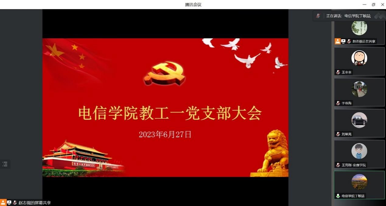 2023年6月27日,金年会jinnianhuicom教工第一党支部通过腾讯会议召开党员大会,会议主要讨论丁敏喆同志能否转为中共正式党员事宜。会议由教工第一党支部书记赵志强主持。