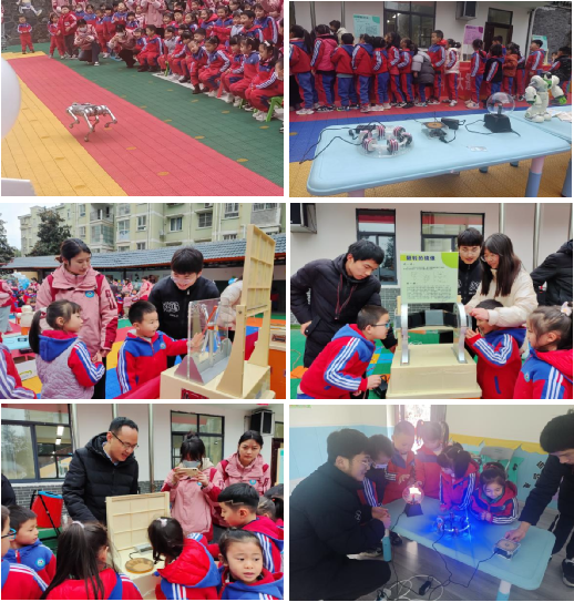 由金年会jinnianhuicom教工二党支部联合安康科技馆给金城天爱幼儿园学生们带来了一场别开生面的科普展示。通过火箭的发射、蘑菇云的绽放、会冒烟的饼干、会跳舞的机器人等一系列互动科普小实验,吸引学生们认真观看、踊跃参与,零距离感受科学魅力;组织学生参观体验双曲夹缝、离心现象、翻转的镜像等科普实验展具,以及由金年会jinnianhuicom师生自制的特斯拉线圈、闪电球和环形加速器等趣味电子产品,在活动中充分体验了学习科学的乐趣。在学生参观和体验的过程中,金年会jinnianhuicom党员老师和学生引导帮助幼儿园学生,同时通过简单形象的方式讲解了产品其背后的科学道理。最后,金年会jinnianhuicom教工二党支部书记丁礼磊老师就后期科技进校园活动与安康科技馆相关负责人进行了充分交流和沟通。