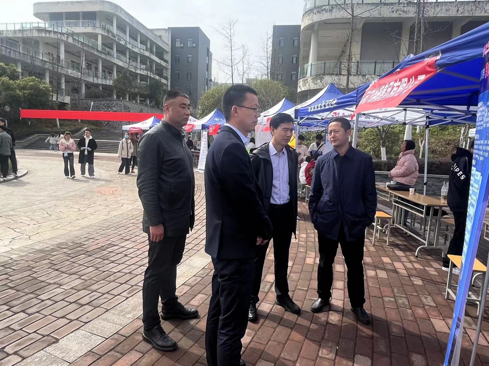 屈险峰现场走访了部分用人单位,了解企业需求、征询企业意见建议,并会同二级学院党总支书记一起了解毕业生应聘情况,指导二级学院引导学生树立正确的择业观和就业观,全方位做好毕业生就业服务工作。