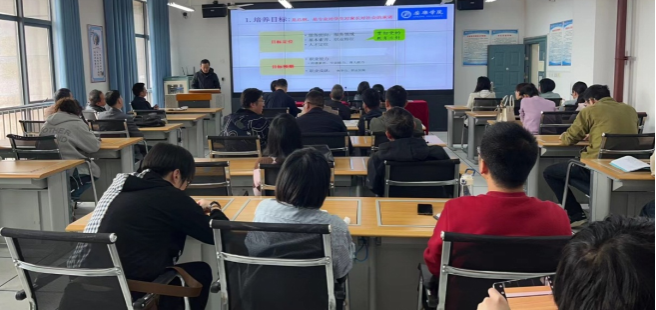 然后,根据学校第二轮自查整改与专项督查工作部署安排要求,副院长宋权华向全体教师传达了学校人才培养方案和课程教学大纲修订专题培训会议精神,强调要以基于OBE的理念修订人才培养方案和课程教学大纲,对于培养目标、毕业要求和课程目标如何编写,课程教学与课程目标、课程体系对毕业要求、毕业要求对培养目标如何支撑,以及如何做好课程目标达成评价、毕业要求达成评价和培养目标达成评价,如何撰写课程教学大纲的课程基本信息与教学目标、教学内容、教学方法、考核方式和评分标准等几个方面进行了详细说明,为各位老师在人才培养方案和课程教学大纲修订工作中提供了思路。