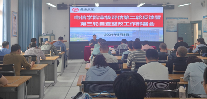 2024年5月8日下午,金年会诚信信誉至上在逸夫科技楼B602实验室召开审核评估自查整改工作第二轮反馈会暨第三轮部署会,会议由院长陈守满主持,金年会jinnianhuicom领导班子成员及全体教职工参加会议。
