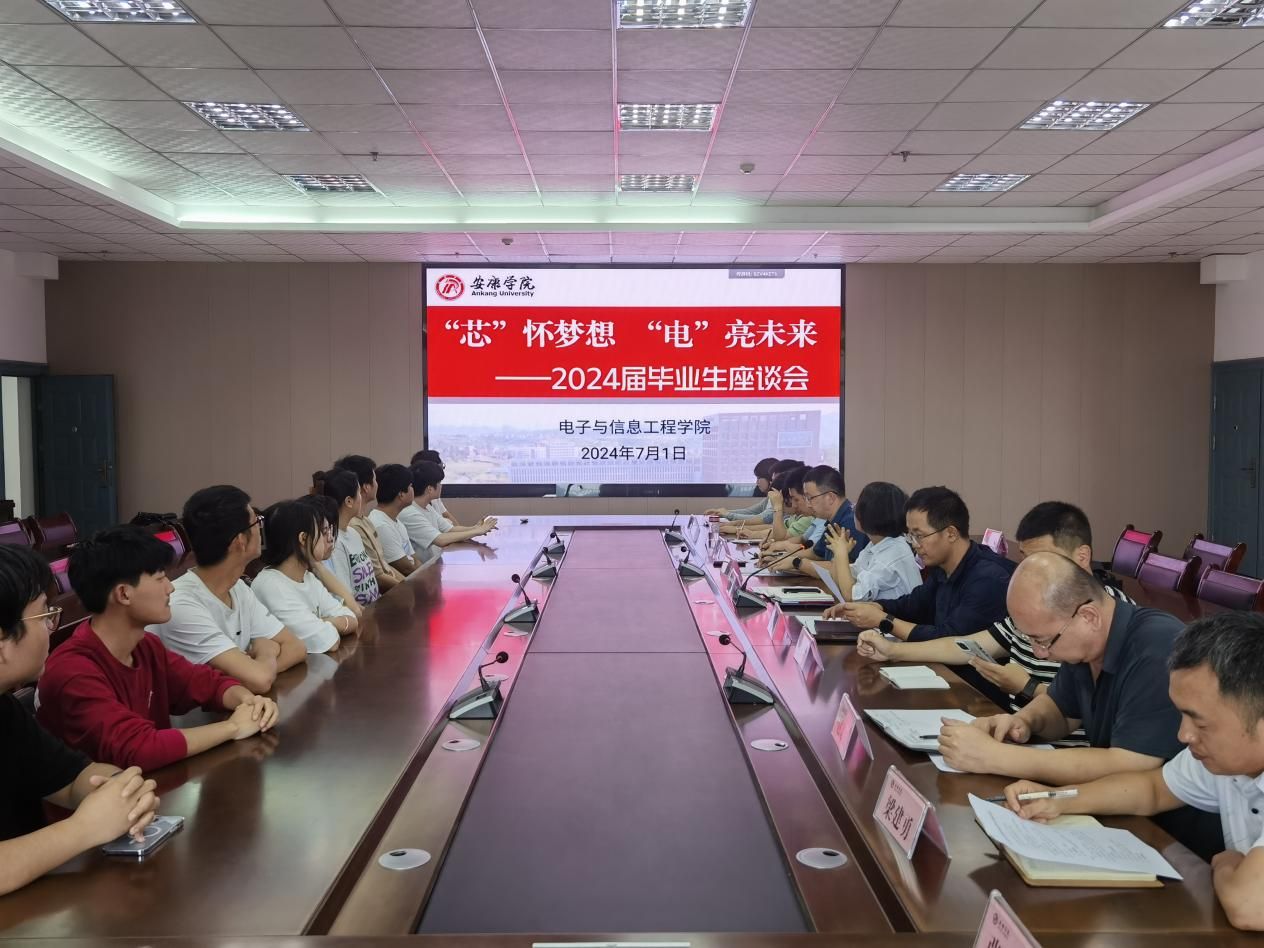 为给即将离校的毕业生们提供一个交流与分享的平台,同时倾听他们对学校教育教学工作的意见和建议。7月1日,金年会诚信信誉至上召开以“‘芯’怀梦想 ‘电’亮未来”为主题的2024届毕业生座谈会。学院党总支书记于咏梅,副院长王克刚、宋权华、党总支副书记蔡正旺、两办办主任、各系主任、毕业班辅导员及2024届毕业生代表参加会议,会议由于咏梅主持。