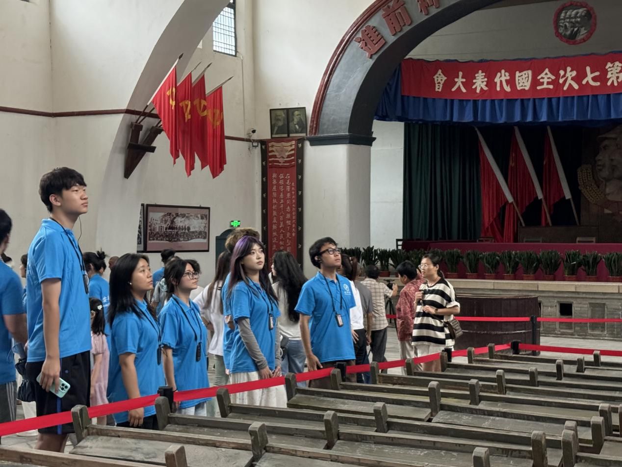 7月7日,在杨家岭革命旧址参观党的七大会址——中央大礼堂时,正是“七七事变”八十七周年。学生第一党支部教师党员吕以宁在中央大礼堂旁,为学生们上了一堂“铭记历史,勇担使命”的微党课。吕以宁指出,七七事变是日本帝国主义全面侵华战争的开始,也是中华民族进行全面抗战的起点,从此无数中华儿女浴血奋战,奏响了反抗侵略的英雄壮歌。尽管山河已无恙,国泰民安,但那段充满硝烟的历史,我们铭记在心,永不敢忘。1945年4月至6月,中国共产党第七次全国代表大会在延安杨家岭中央大礼堂召开。把毛泽东思想确立为党的指导思想并写入党章,是党的七大的历史性贡献,它为党在抗战胜利后领导全国人民夺取新民主主义革命胜利、实现民族独立和人民解放指明了正确方向、开辟了正确道路。吕以宁希望各位同学:一要铭记历史,牢记中国人民不屈不挠的抗战精神;二要坚定理想信念,要继承和发扬党的优良传统,积极投身到强国建设和民族复兴大业中去;三要勇担使命,以先辈们为榜样,传承红色基因,弘扬伟大建党精神。在今后的学习和生活中,努力践行社会主义核心价值观,肩负起实现中华民族伟大复兴的历史重任,以实际行动迎接新中国成立75周年。