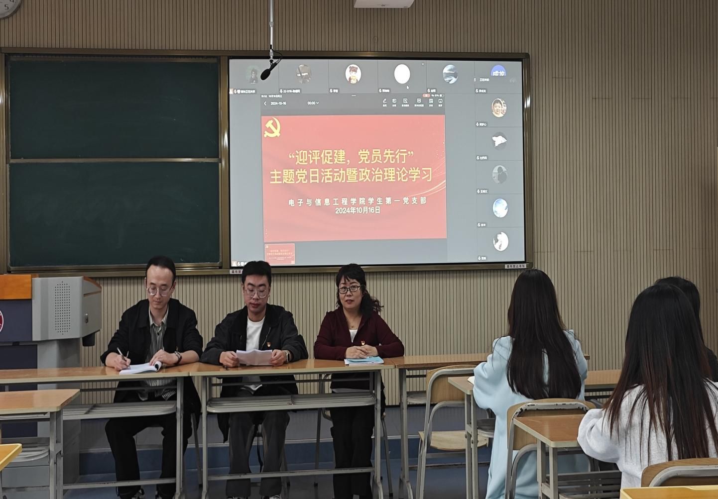 为提高学生党员对本科教育教学审核评估工作重要性的认识,充分发挥学生党员的先锋模范作用,以优异成绩迎接审核评估。2024年10月16日,金年会jinnianhuicom学生第一党支部在一号教学楼1319教室通过线上线下相结合的形式,开展了“迎评促建,党员先行”主题党日活动暨政治理论学习,会议由学生第一党支部书记翟子轩主持,学生第一党支部全体党员、入党积极分子、发展对象参与。