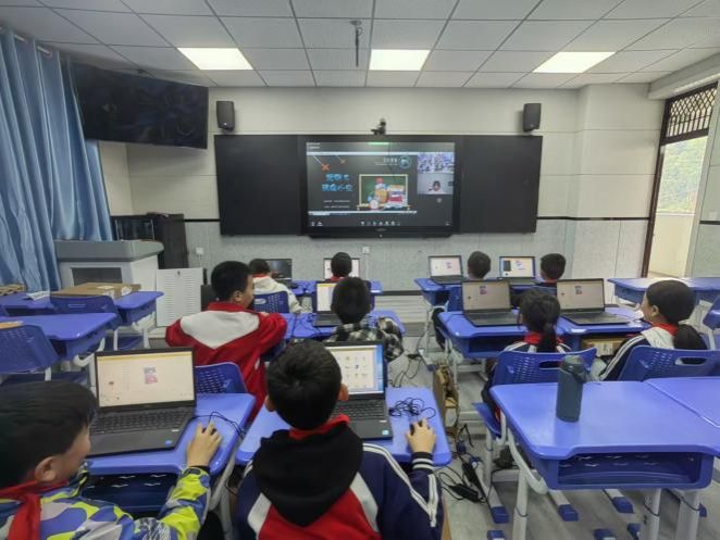“云山智童”支教队的队员通过线上教学平台,与白河县茅坪小学和宋家镇小学建立起了长期稳定的支教合作关系。每周固定的支教课程时间,成为了山区孩子们与前沿编程知识亲密接触的宝贵时刻。支教队员们精心设计课程,从基础的编程概念引入,到利用少儿编程软件开展趣味盎然的编程实践案例,如指导孩子们运用积木块在源码编辑器中绘制多彩图案、制作小游戏等,充分激发孩子们对编程世界的好奇心与探索欲。