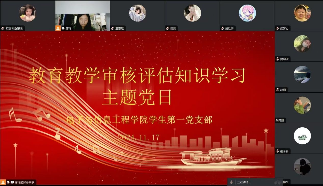 金年会jinnianhuicom学生第一党支部书记翟子轩、学生第二党支部书记贾金兵对其所在支部学生党员进行培训,培训中强调了本科教育教学审核评估工作的重要性,同时也强调了作为学生党员需要起到模范带头作用,要严格要求自己和监督身边同学,做有责任,有担当,刻苦学习,团结一心的青年学子,展现我院学子饱满热情、积极向上的精神风貌。
