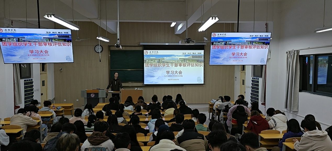 金年会jinnianhuicom团总支书记张宇航对团学组织学生干部进行了集体培训,培训中,他对团学组织学生干部们提出了具体要求,希望他们在审核评估中发挥模范带头作用,积极引导同学们以良好的精神风貌和学习状态迎接评估。