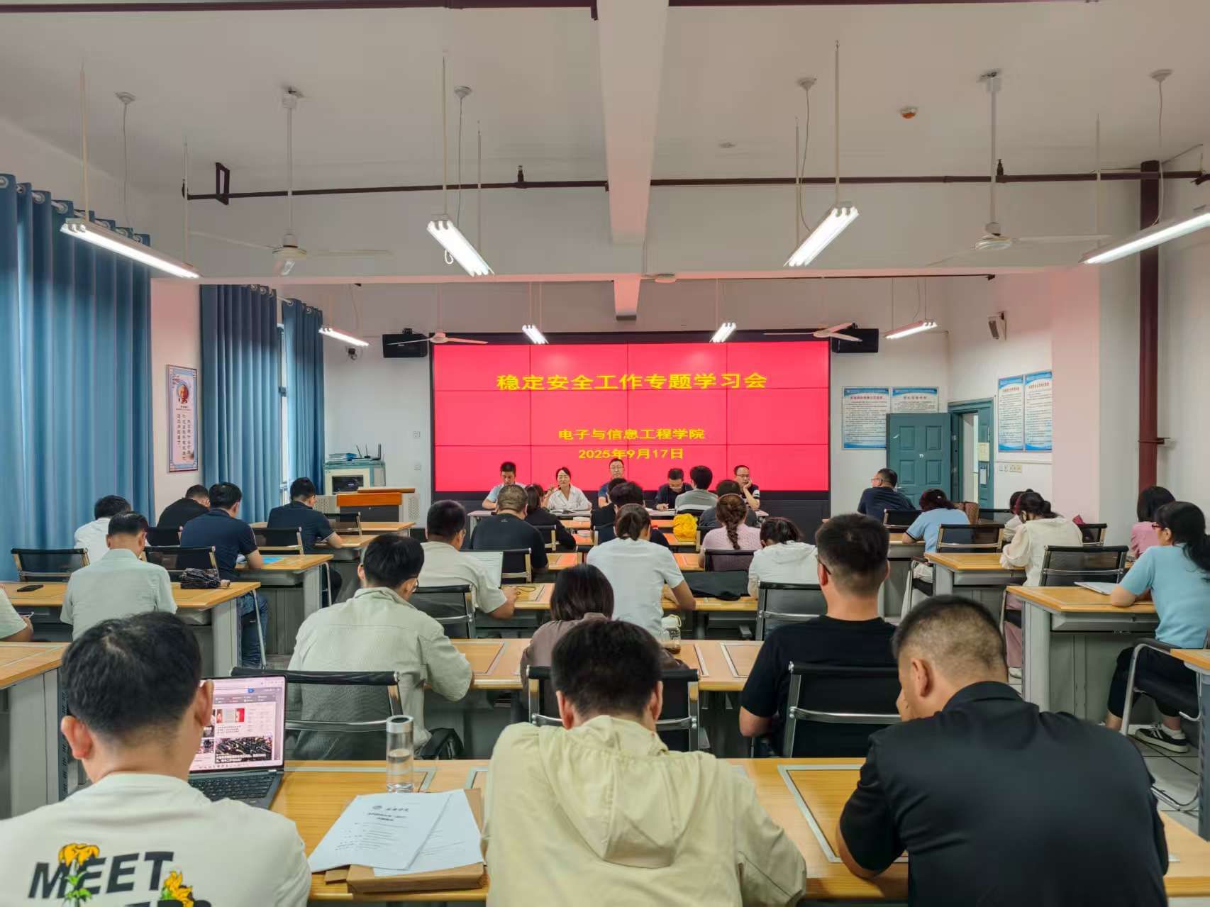 9月17日下午,我院于逸夫科技楼B602召开稳定安全工作专题学习会,全体教职工参会,会议由党总支书记田静主持。