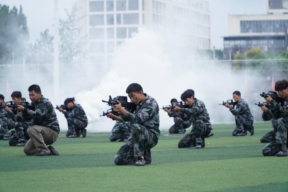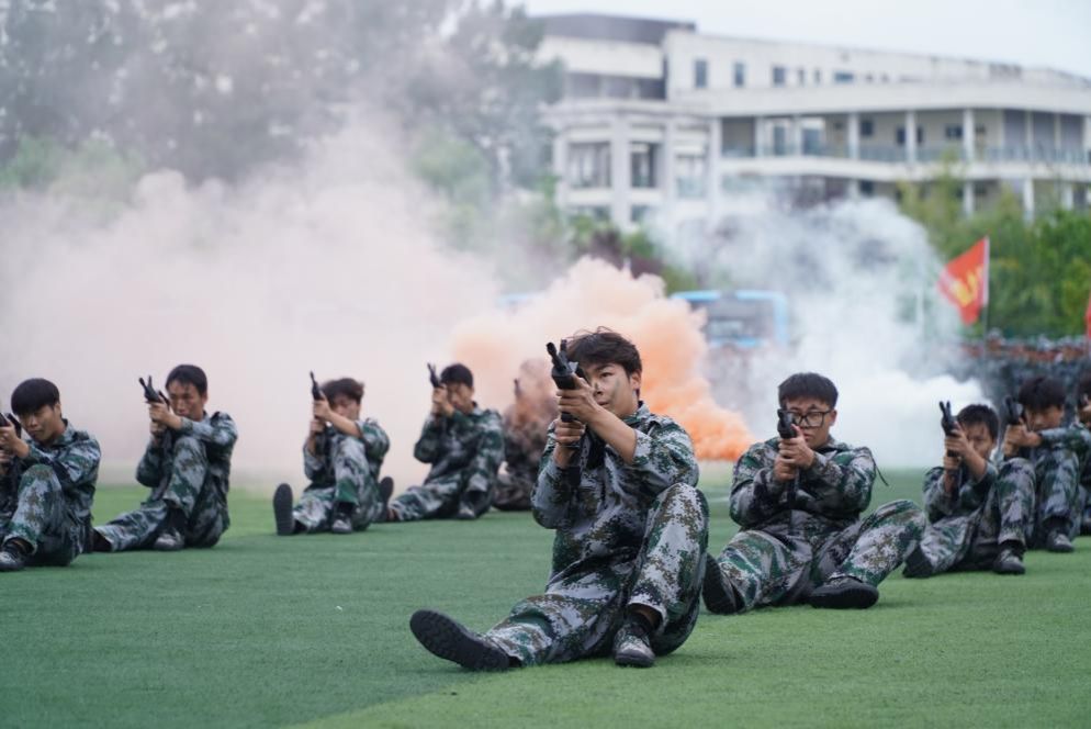 随后登场的刺杀、战术方队表演更是将现场氛围推向高潮。金年会jinnianhuicom学子们动作刚劲有力、衔接连贯利落,出拳、突刺、战术转移等一系列动作精准到位,尽显时代青年的青春热血与军人般的坚毅气魄,展现出过硬的军训成果。