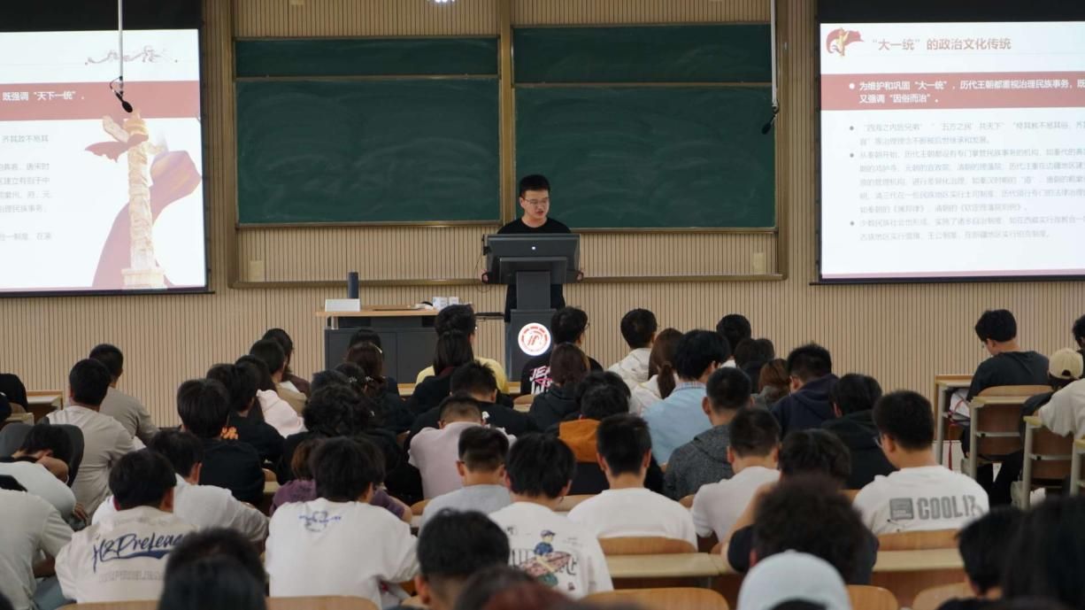 为引导新生树立正确的中华民族历史观,铸牢中华民族共同体意识,2025年10月11日下午,辅导员贾金兵在江北校区1404教室讲授主题为“中华民族共同体意识的形成与铸牢”的入学教育。金年会jinnianhuicom2025级全体新生参加此次学习。