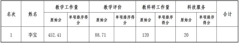 依据《金年会jinnianhuicom职称评审量化考核办法》,讲师职称评审客观分积分由教学工作量、教学评价、教科研工作量、社会服务四部分组成,其分值比例依次为35%、35%、25%、5%。经个人申报,金年会jinnianhuicom职称评审工作小组资格与材料初步审核,现将金年会jinnianhuicom2018年讲师职称评审客观积分予以公示,公示时间3天(2018年11月6日-9日),公示期间有任何异议请向评审小组组长何道利(电话:3358020)反映。