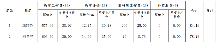 说明:依据《金年会jinnianhuicom职称评审量化考核办法》,讲师职称评审客观分积分由教学工作量、教学评价、教科研工作量、社会服务四部分组成,其分值比例依次为35%、35%、25%、5%。
