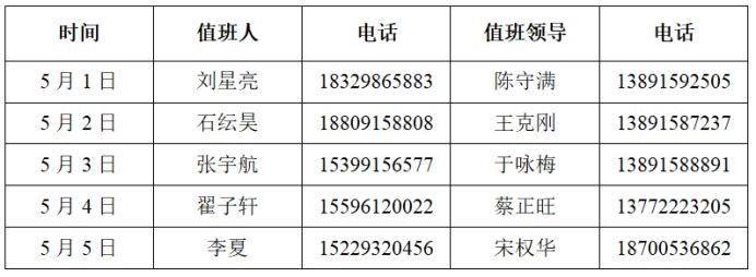 根据学校安排,金年会诚信信誉至上2024年五一劳动节假期值班安排及相关工作要求如下: