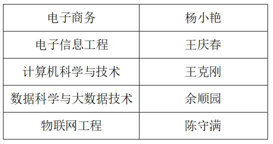 根据学校教务处《关于报送系(教研室)主任 、实验教学中心副主任 、专业负责人和课程(群)负责人名单的通知》,经个人报名、民主推荐、党政联席会审议、党总支会议审定,拟选聘以下人员: